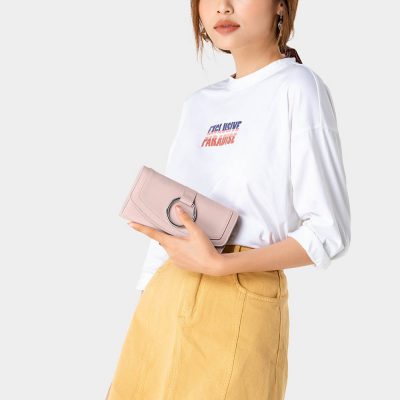 Ví cầm tay nắp gập trang trí khoen tròn VI109